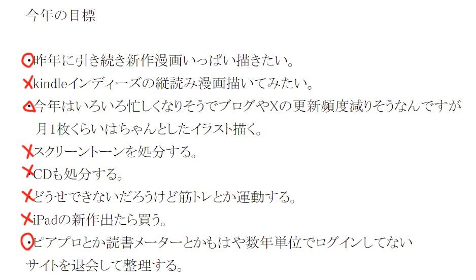 2024年も今日で終わるので元旦に掲げた目標が